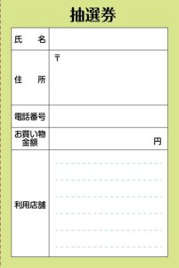 期間中にお買い物したレシートと必要事項を記入した、えびす講チラシ内の抽選券を封筒に入れて郵送してください。