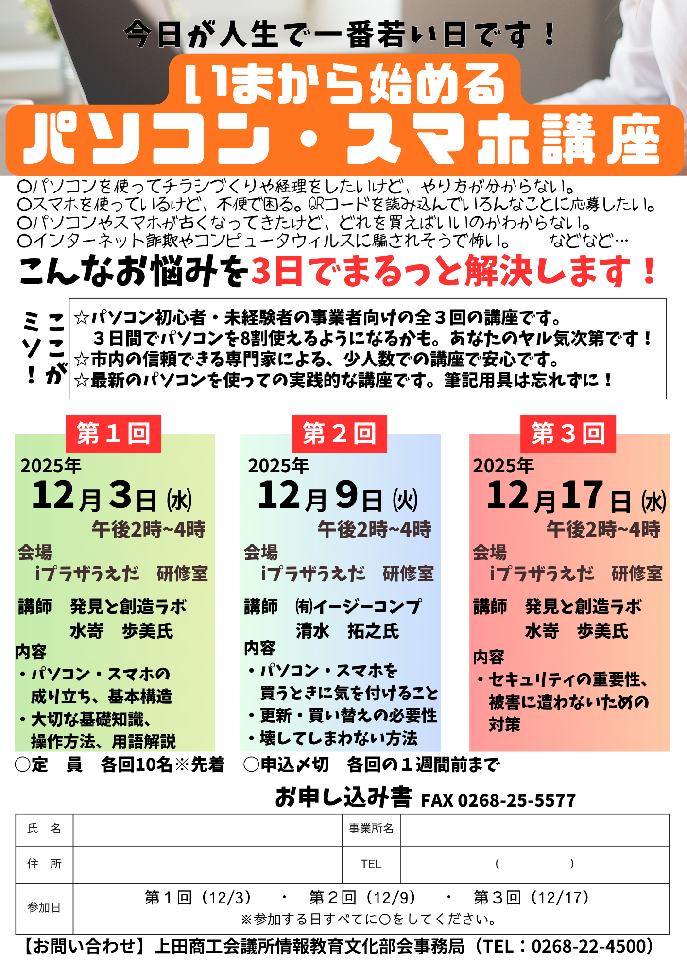 ○会場 iプラザうえだ(上田市市民ICT推進センター) パソコン研修室(上田市大手2-3-3)