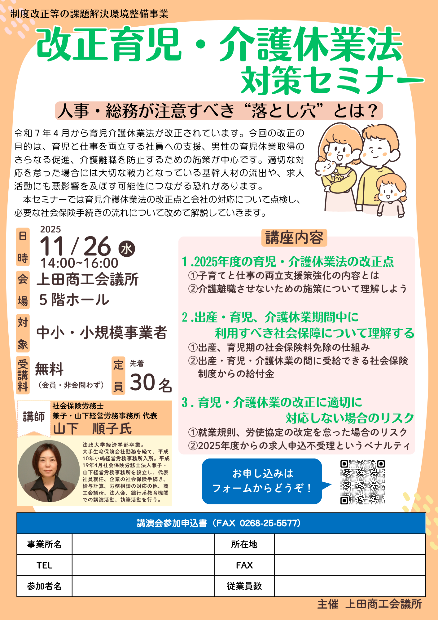 もしくは下記チラシにご記入いただき、上田商工会議所(FAX:0268-25-5577)へお申込みください。