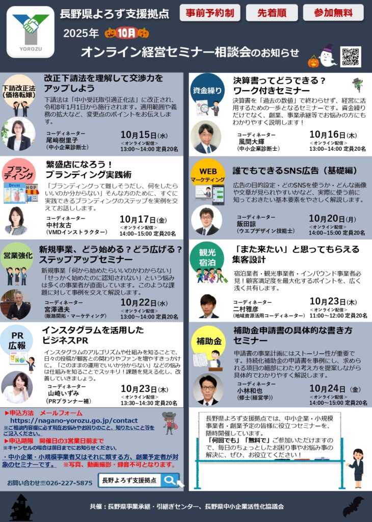 長野県よろず支援拠点 10月のオンラインセミナー・相談会