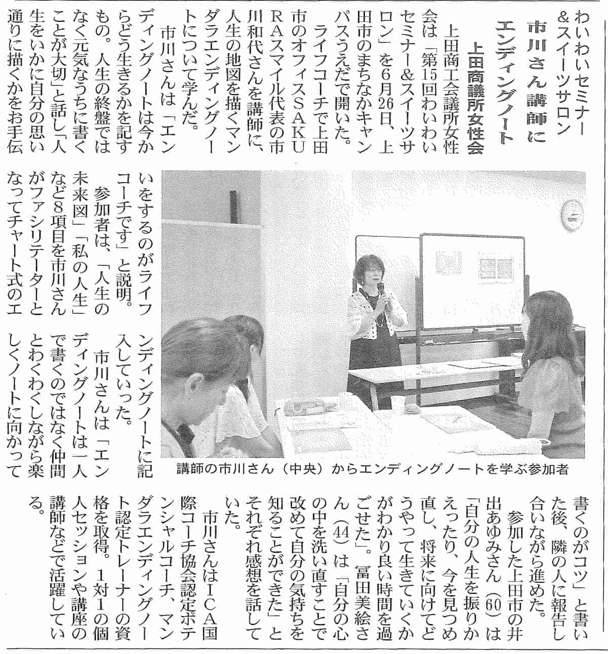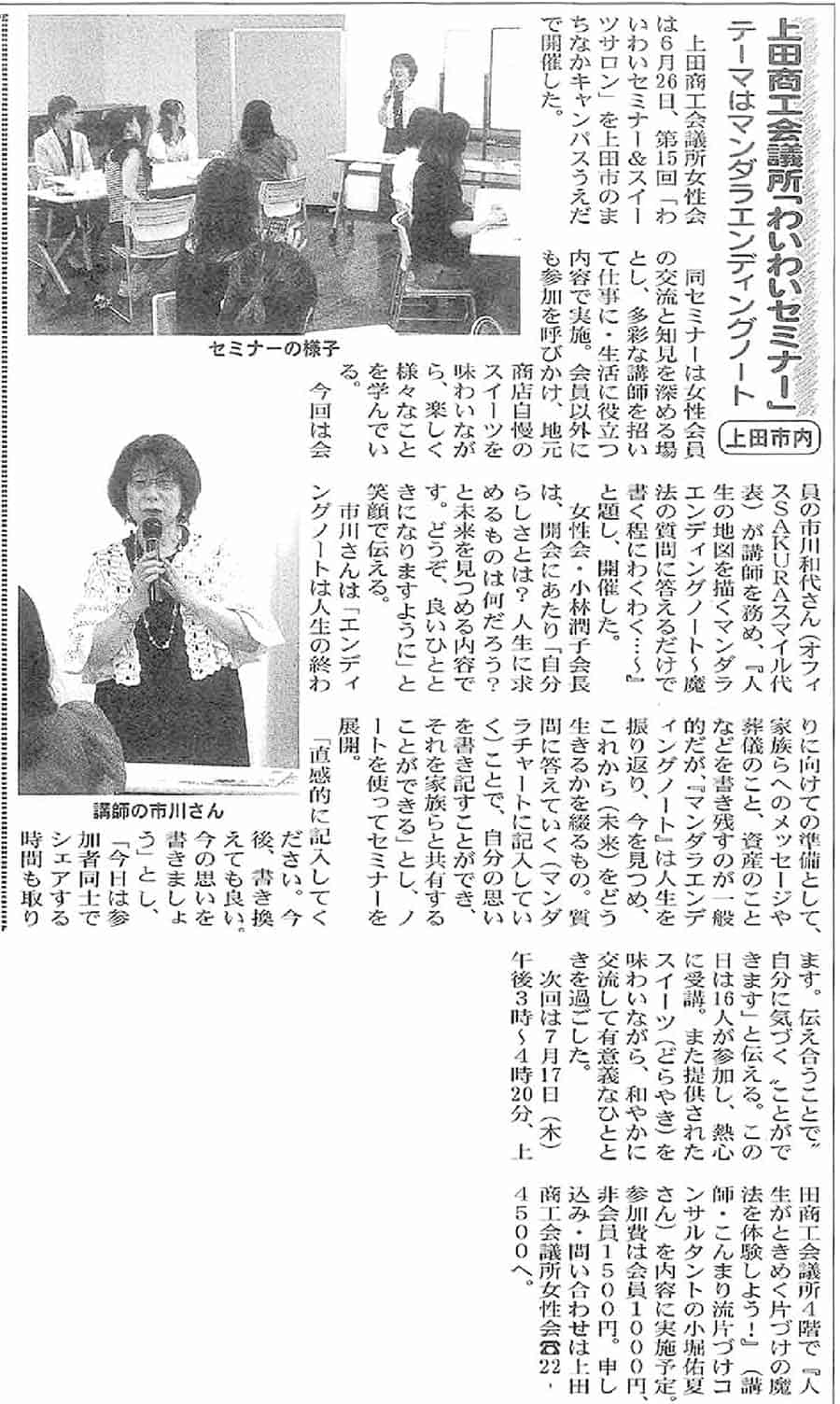 信州民法2025年7月2日号で当会主催の第15回わいわいセミナー&スイーツサロンの様子が掲載されました。ぜひご覧ください。