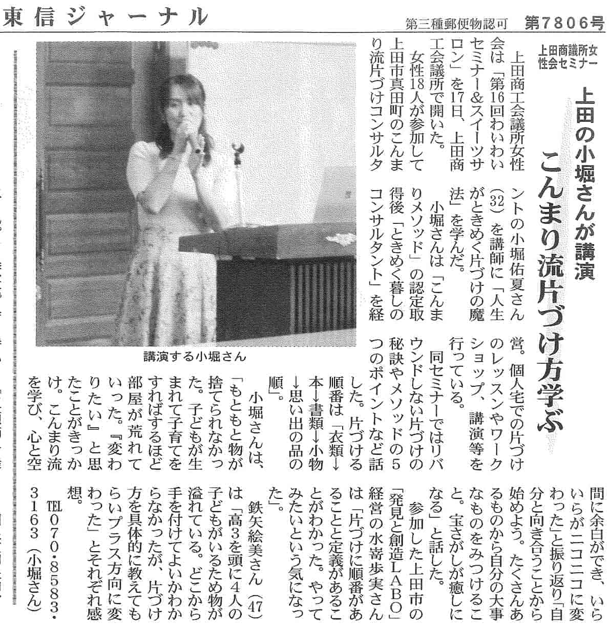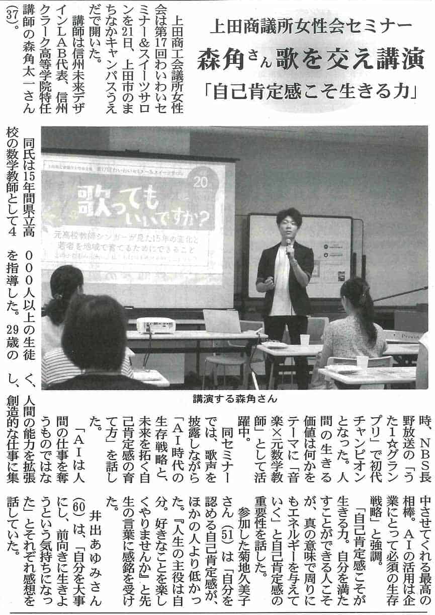 東信ジャーナル2023年9月12日号に掲載していただきました。