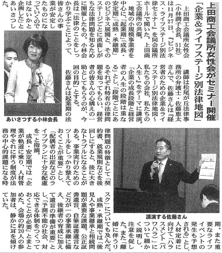 信州民法2025年12月2日号で当会主催のビジネス・ライフステージ別法律セミナーの様子が掲載されました。ぜひご覧ください。