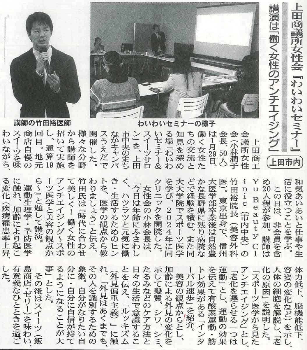 信州民法2026年2月3日号で当会主催のわいわいセミナー&スイーツサロンの様子が掲載されました。ぜひご覧ください。